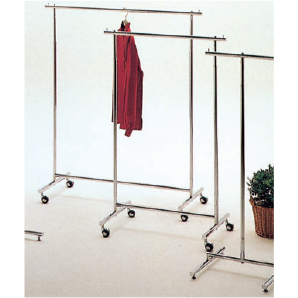 コート15着程度をかけられるクロームメッキ仕上げのキャスター付ハンガーラック。